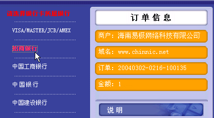 3、如果您传真或者扫描都不方便,那么请您在汇款的时候多汇款一个尾数,比如需要汇款1680元,那么请汇款例如1680.2元。汇款之后,请直接发送email至:caiwu@cctvdns.com,信中请详细注明以下信息: 您的会员帐号 您汇款的准确金额 您汇款采用的银行 汇款到我公司哪个银行帐号 汇款时间 您需要购买的产品 您的联系方式